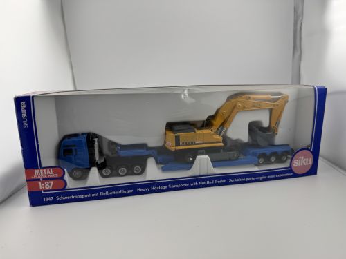 Schwertransport mit Tiefbettauflieger + Liebherr Bagger